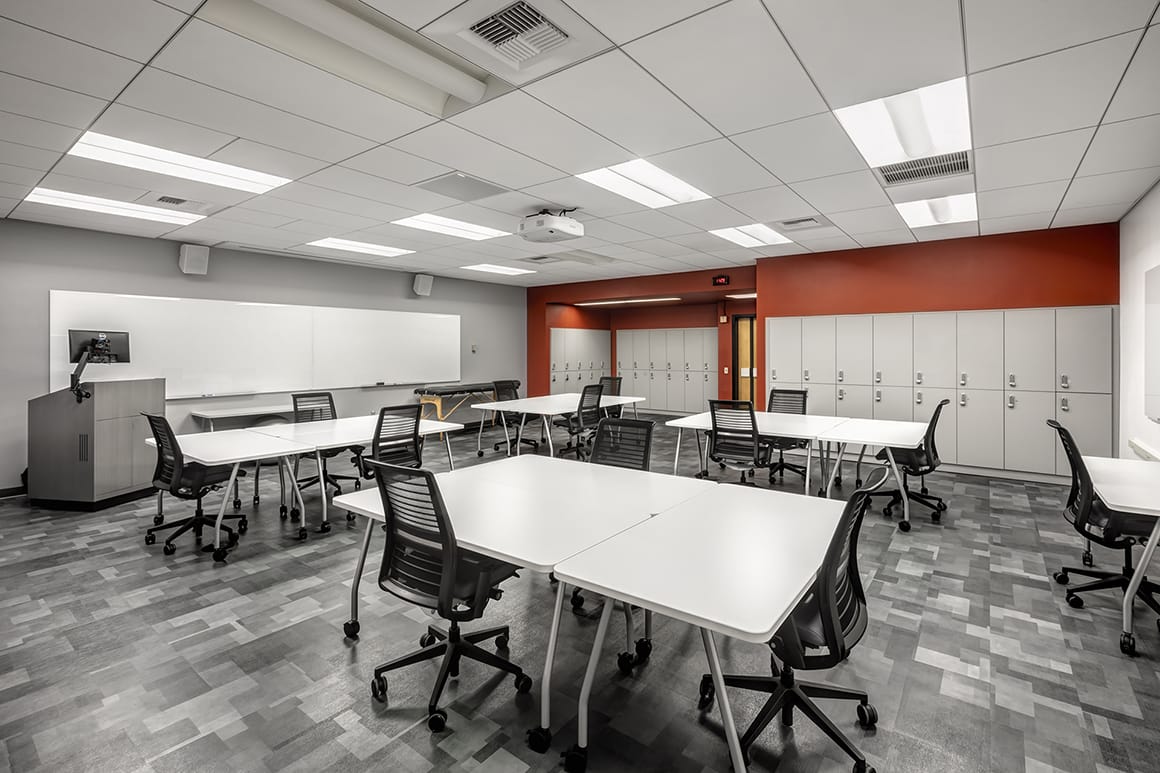 L/Sa worked with the University of Southern California’s Keck School of Medicine to create 16 new active learning studios and adjacent quiet study spaces. The project spans across two buildings on the USC Health Sciences Campus: the John E Bishop Medical Teaching & Research Building and McKibben Hall. The project, which was scheduled around the academic calendar, also included upgrades to integrated learning technology, security, and lighting, as well as the selection of new lockers, equipment and furnishings throughout.